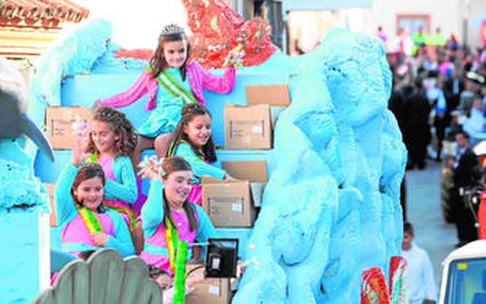 Por tercer año consecutivo, la comisión de fiestas acordó celebrar la cabalgata un día después de la coronación para así dar mayor protagonismo al acto, colorista y animado por encima de todo. El cortejo, formado por siete carrozas, partió poco después de las ocho de la tarde desde la avenida Juan Rodríguez y recorrió, además de la citada arteria del casco urbano, las calles Menéndez Pidal y el tramo final de la avenida Doña Rosa García López-Cepero dejando a su paso un rastro dulce en forma de caramelos de goma, con 3.500 kilogramos.