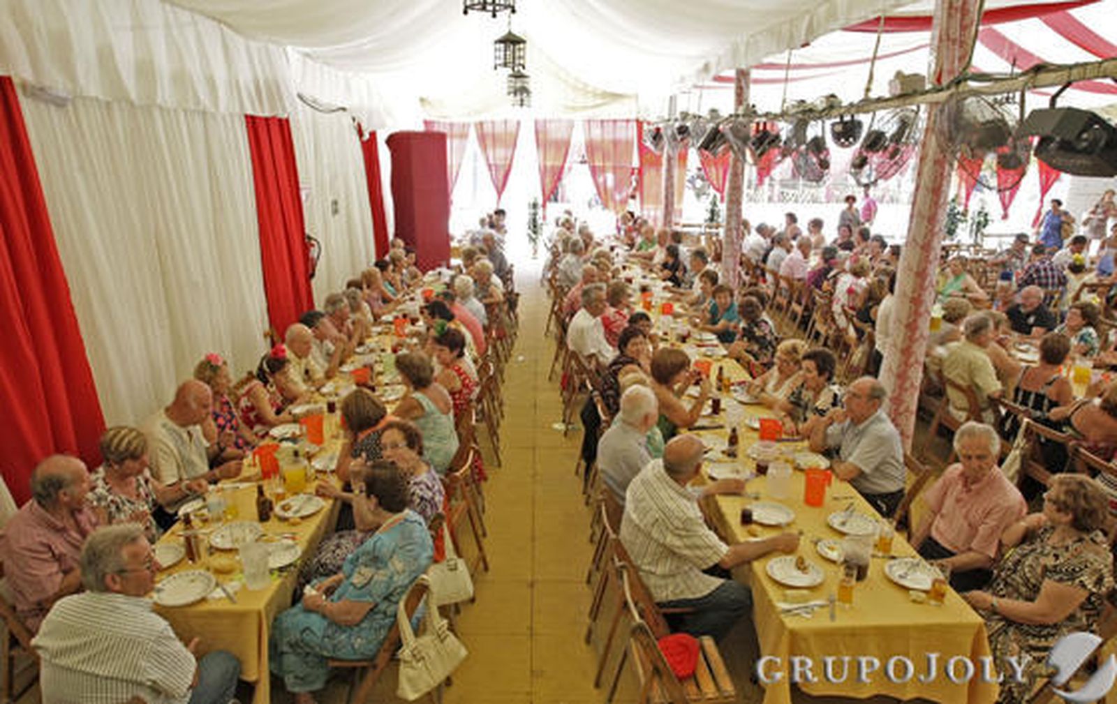 A pesar del calor, los mayores de la ciudad pudieron disfrutar durante unas horas del ambiente de la Feria Real gracias a sendos almuerzos ofrecidos en el recinto por la Delegación municipal de Bienestar Social como viene siendo tradicional desde hace ya bastantes años.