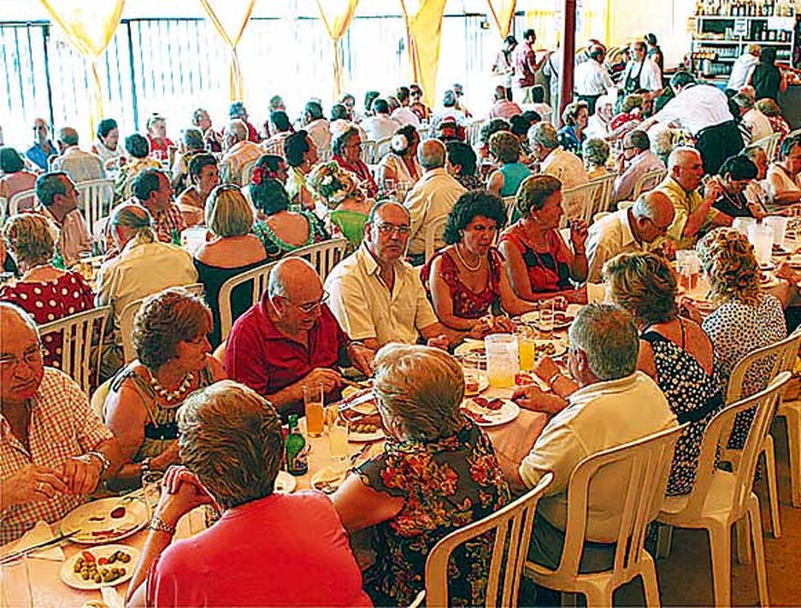 La Peña El Barrio reúne en un almuerzo a más de 130 mayores de centros de día de la ciudad. Esta actividad cumple en 2008 su décimo año. Las comidas se organizan dos veces en la Feria.