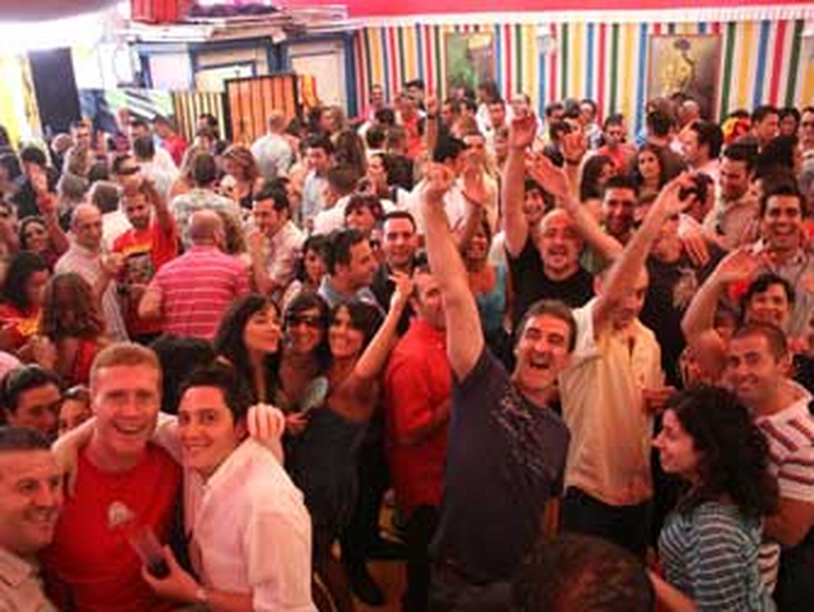 Otra de las casetas que atrae a más gente joven de entre 25 y 30 años es El Jaleo. David García destaca que este año la feria está siendo algo más tranquila que otros años, "se nota mucha gente pero hay menos movimiento en las barras".