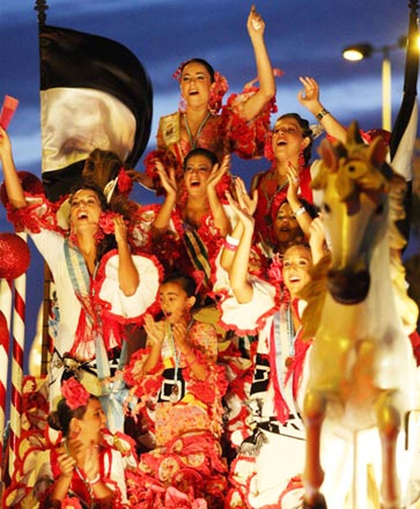 Las carrozas hacen las delicias de niños y no tan jóvenes en su recorrido previo al alumbrado de la portada de la Feria. La Línea vive con intensidad la primera noche de su Velada y Fiestas 2008