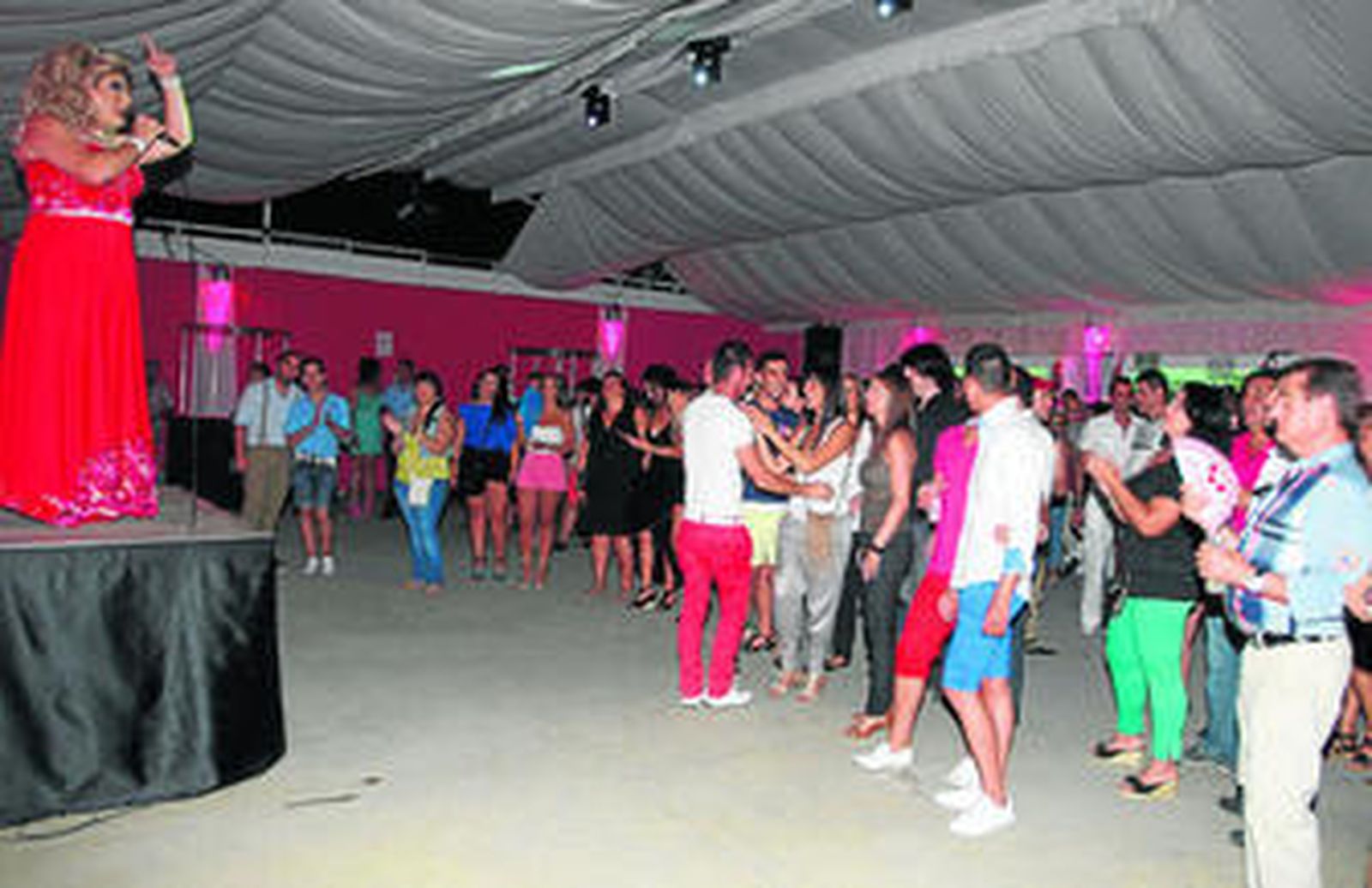 Sin embargo, definitivamente las casetas que triunfaron esa noche fueron las discotequeras, que se llenaron de gente joven pese a que sólo hubo tres actuaciones: en la caseta Popurrí 2005 tuvo lugar el striptease de Juanjo Martín, Hombres, mujeres y viceversa; en Amigos de los 3D actuó la artista transformista linense Nacha la Macha; y en El Portón disfrutaron de la música de otro pinchadiscos.