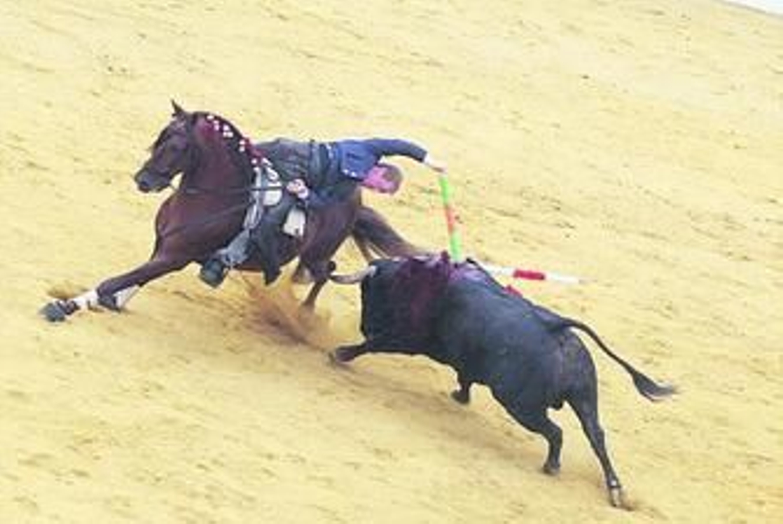 Tampoco se quedó atrás Ribeiro Telles que sorprendió ya en la pasada Feria de Algeciras. Hizo las cosas bien y tiene maneras propias de un rejoneador con personalidad perteneciente a una de las grandes dinastías del toreo portugués. Lo mejor de su actuación llegó en el segundo tercio, dejando banderillas en suertes de elevado mérito, citando a dos metros del toro para salir en suertes al pitón contrario muy arriesgadas.