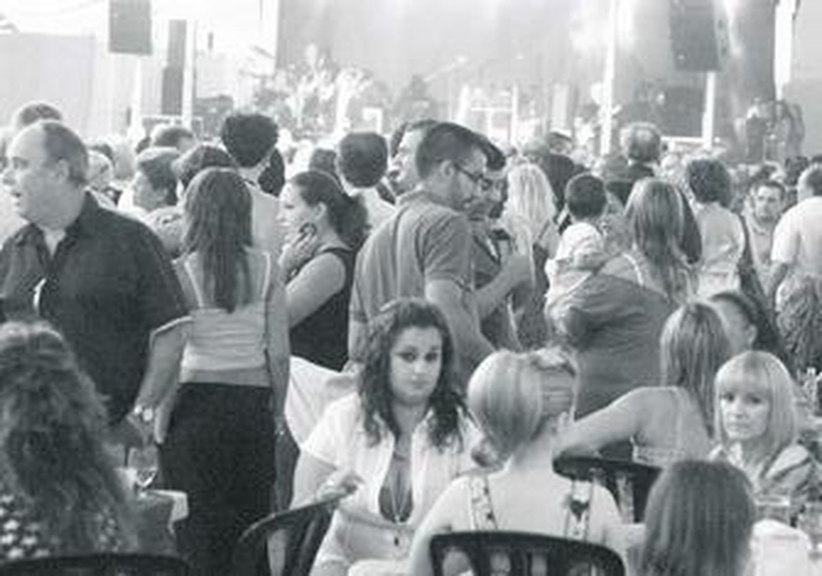 Las casetas de Guan- Nai o Jaleo estuvieron abarrotadas desde bien pronto. En la primera todavía resonaban por sus paredes las comparsas de Antonio Martín del día anterior mientras que Jaleo mostraba en sus pantallas fotos con las poses más extravagantes de los concursantes de Gran Hermano que han pasado esta semana por la caseta, así como imágenes del público con Mister España 2003 o con los chicos de Fama.