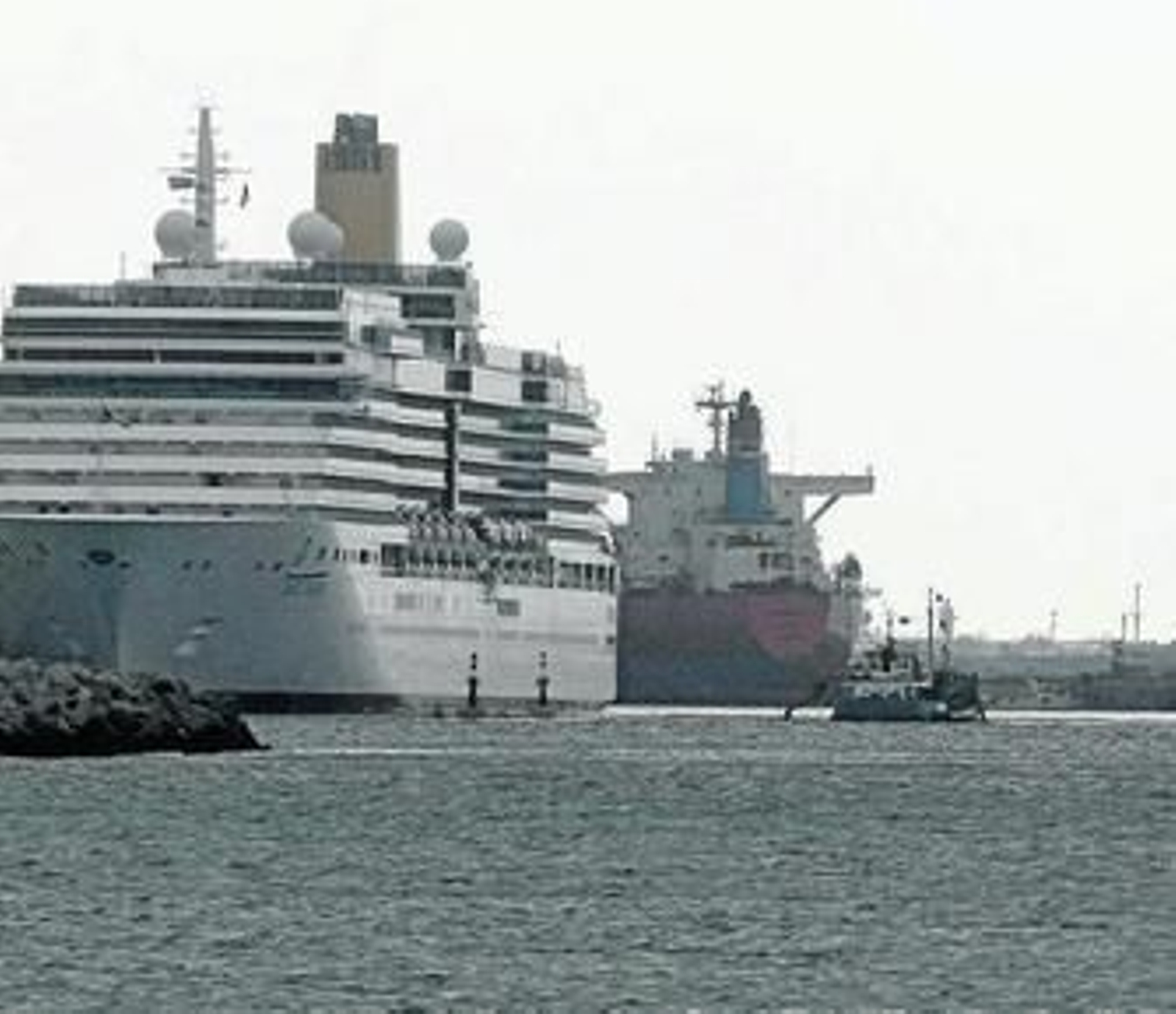 El buque que está llevando a cabo los trabajos de dragado de la zona antes de que comiencen los rellenos, opera frente a la oficina portuaria del puerto gibraltareño, frente al dique de San Felipe en La Línea, en un espacio próximo al lugar donde atracan los grandes cruceros que hacen escala en el Peñón.