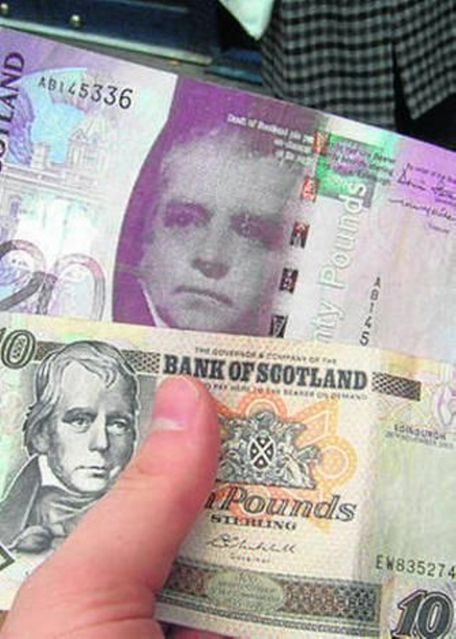 Tres bancos emiten esa moneda, que es de curso legal. El Royal Bank of Scotland, el Banco de Escocia y el Clydesdale Bank imprimen libras en papel para circulación doméstica. Estos billetes son aceptados en todo el Reino Unido, pero en especial son vistos en Escocia, y tiene el mismo valor que las libras esterlinas del Banco de Inglaterra en Inglaterra y Gales. Pero fuera de sus fronteras, la Policía británica asocia la libra escocesa al crimen organizado. Durante los últimos años, según una información de Televisión Española, ingentes cantidades de esa moneda, procedente de actividades ilícitas, han sido trasladas hasta Gibraltar y, una vez en el Peñón, este tipo de moneda cruzaba la verja y el dinero negro se blanqueaba en las casas de cambio de la Costa del Sol.