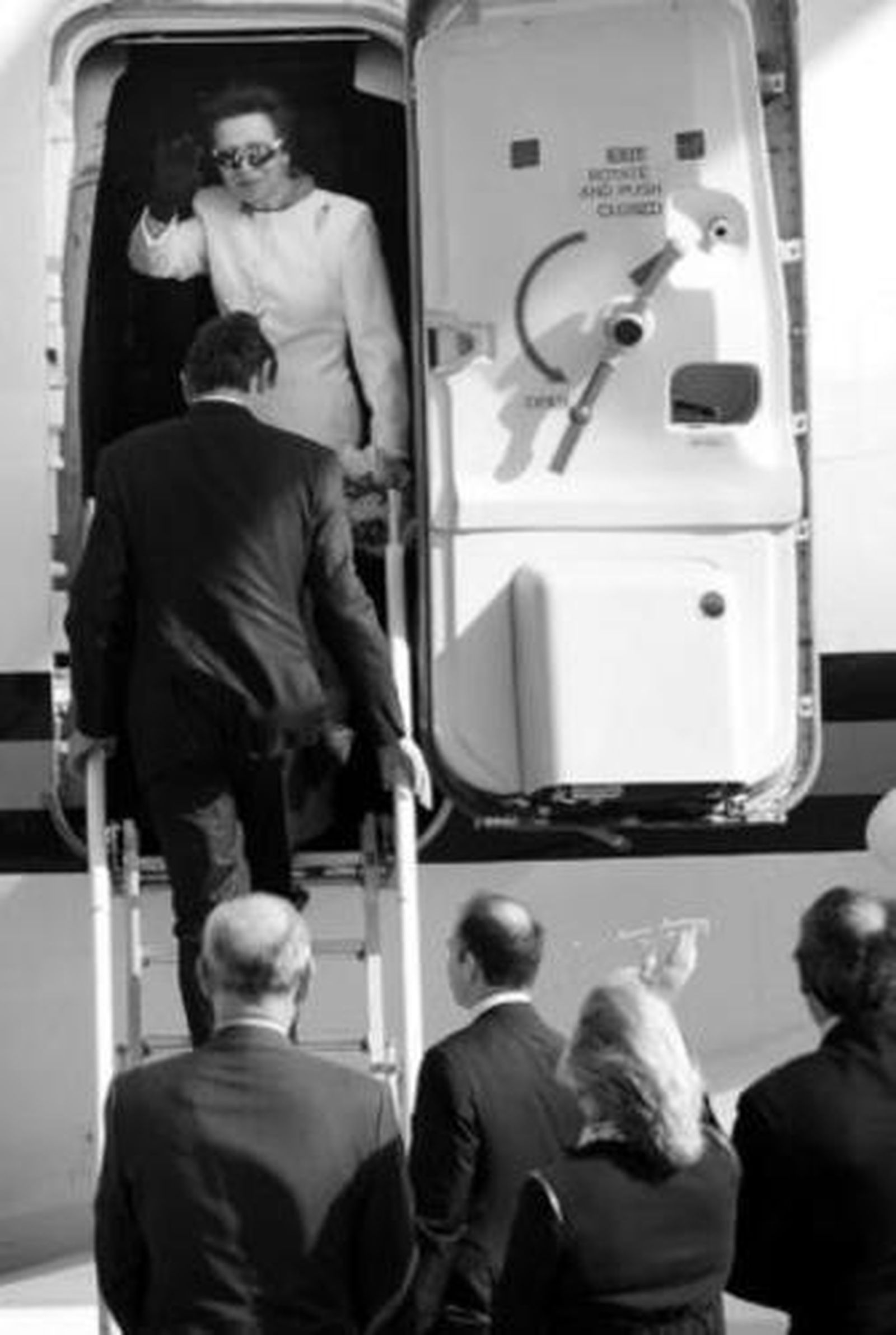 A la finalización de esta visita, la Princesa y su marido se trasladaron de inmediato al aeropuerto de North Front, donde fueron recibidos, al igual que cuando llegaron el miércoles, por la Guardia de Honor y la banda del Real Regimiento de Gibraltar. A los pies del avión intercambiaron saludos de despedida con el gobernador del Peñón, Sir Robert Fulton, y el ministro principal, Peter Caruana.