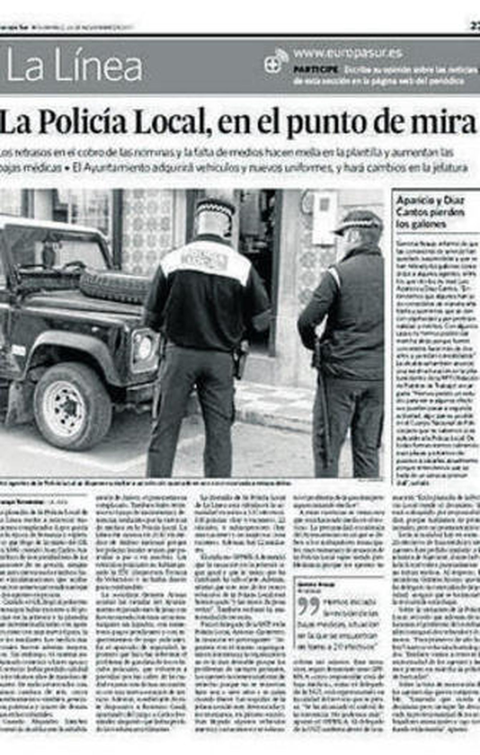 La hemeroteca demuestra que esta promesa ya fue realidaza. En concreto en la página 23 de la edición del domingo 20 de noviembre de 2011 y en un artículo titulado "La Policía Local, en el punto de mira", se puede leer en titulares que aumentaban las bajas médicas en ese sector y que el Ayuntamiento "adquirirá vehículos y nuevos uniformes y hará cambios en la jefatura".