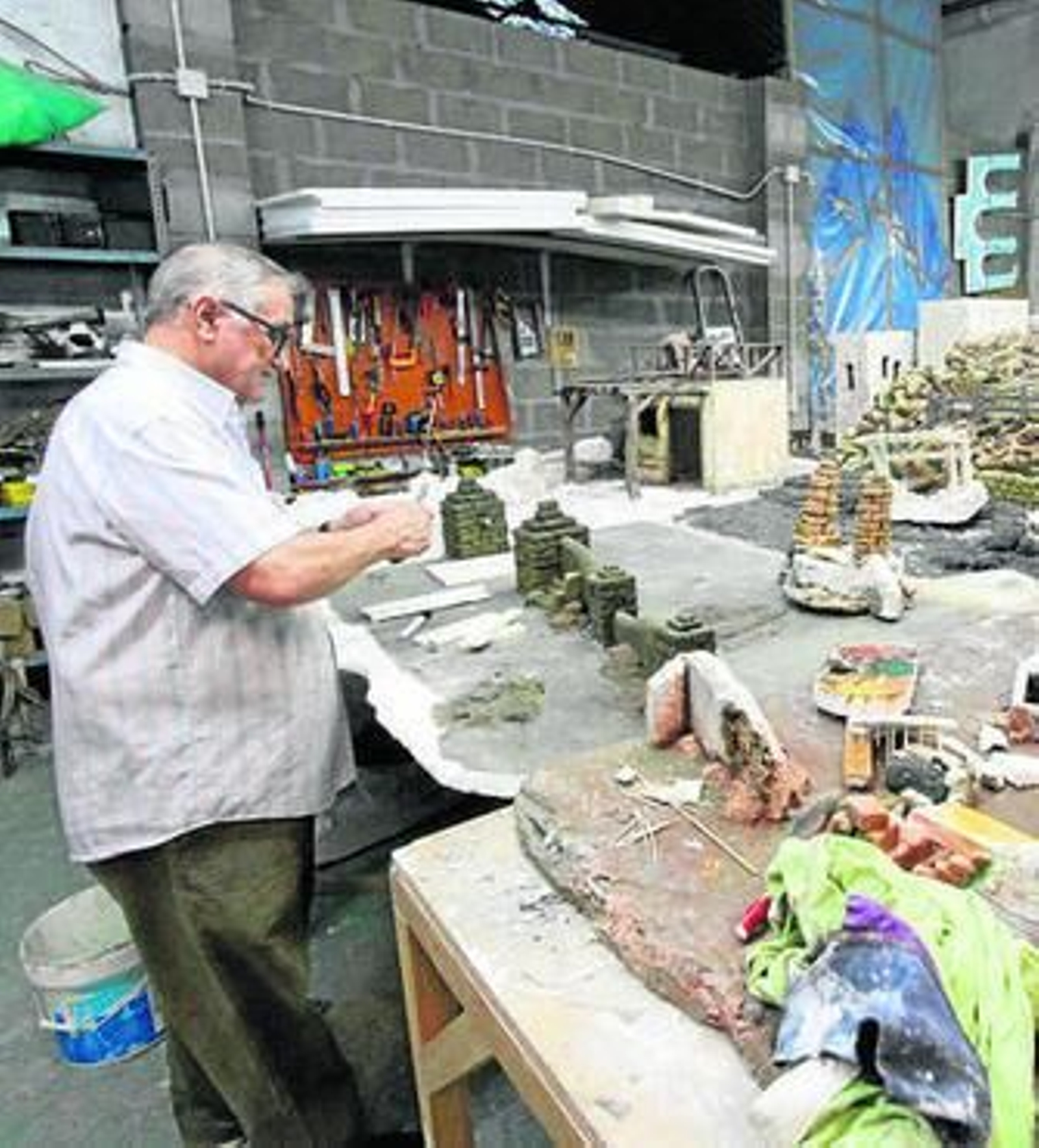 "Somos como las fábricas de turrón. A partir de junio ya estamos trabajando a un ritmo constante, cuatro tardes por semana, para que cada año el belén sea diferente", compara José Luis Lima, presidente del colectivo que este año se ha embarcado en uno de los retos más laboriosos de la trayectoria de la entidad: construir un nacimiento que se pueda contemplar rodeándolo.