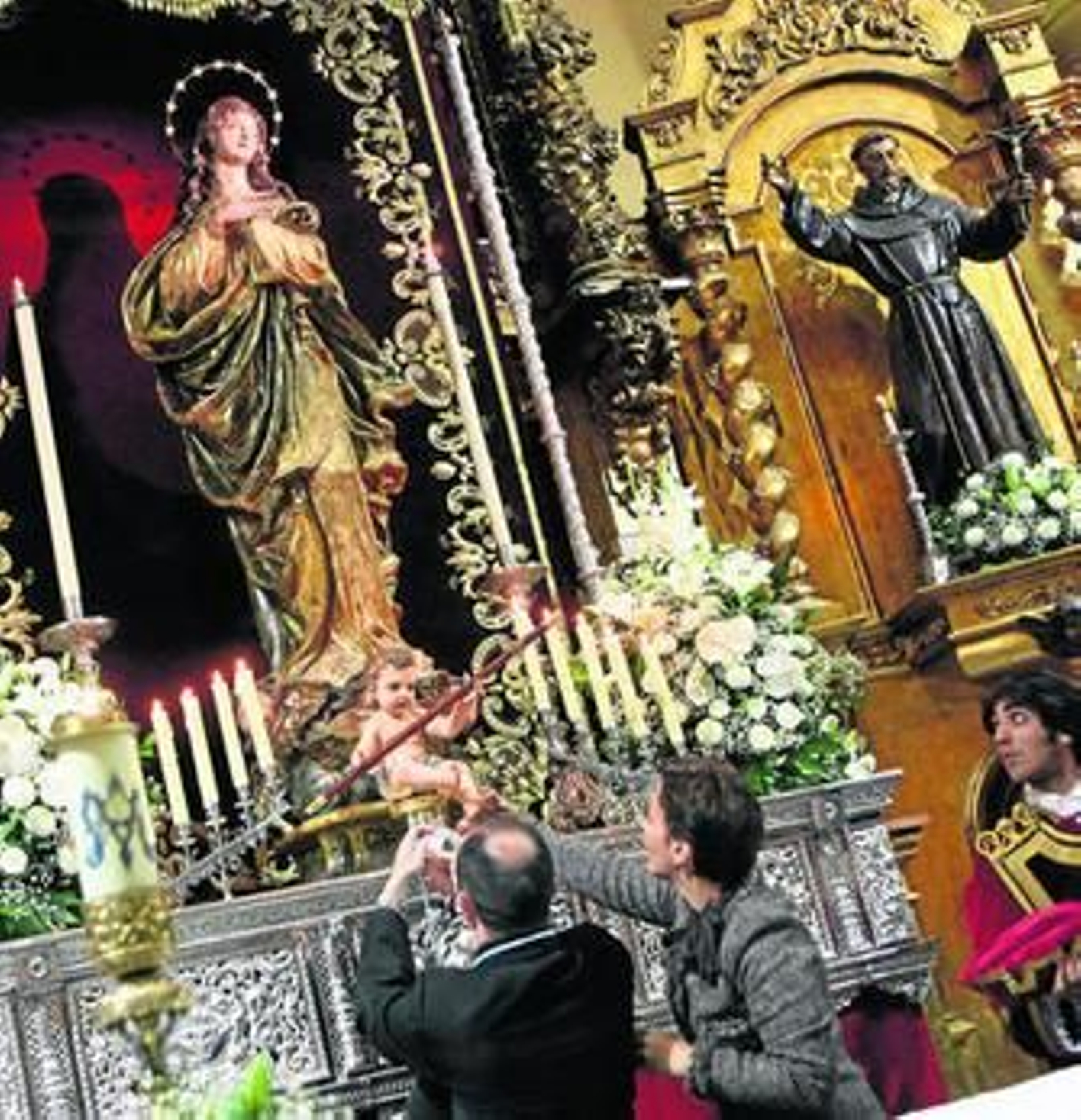A renglón seguido Juan Enrique Sánchez y Gemma Araujo prepararon el bastón de mando, la insignia y la medalla que desde ayer luce la imagen de la Inmaculada que el escultor sanroqueño Luis Ortega Bru en 1954. Con la interpretación del himno de la Inmaculada y el repique de campanas se puso fin a un día que recordarán todos los devotos linenses.
