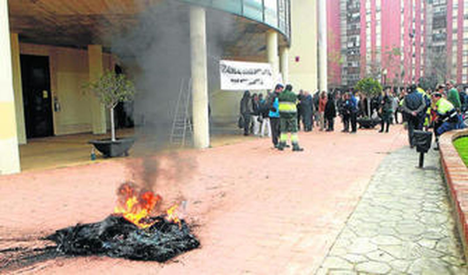En este primer día de movilizaciones algunos trabajadores quemaron neumáticos, lo que provocó una llamativa humareda, y colocaron pancartas en contra de la actitud del alcalde, Juan Franco, con frases como "menos dictadura, más negociación", y "alcalde, paga noches, turnos y festivos ya", en alusión al personal de la Policía Local.