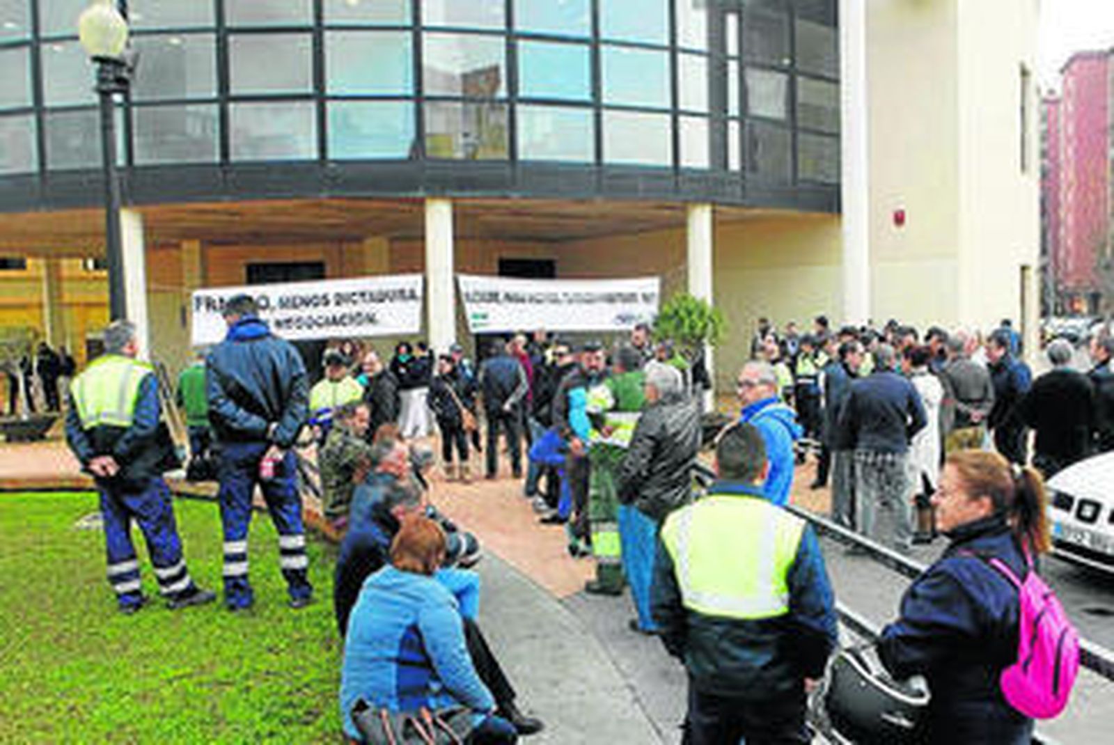 Los trabajadores del Ayuntamiento de La Línea, convocados por las secciones sindicales municipales, protagonizaron ayer de 9:00 a 11:00 a las puertas del Ayuntamiento la primera jornada de movilizaciones contra la decisión del equipo de gobierno de aplicar la sentencia que anula la RPT que ha estado vigente durante los dos últimos años y que provocará la retirada de los complementos considerados ilegales por dos juzgados y la Cámara de Cuentas de Andalucía.