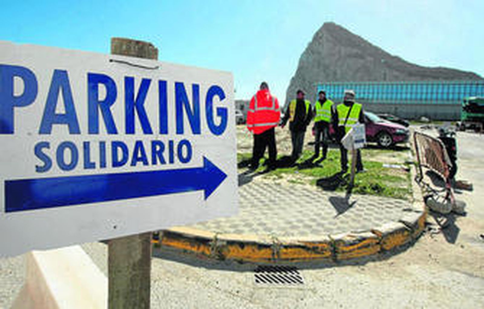El suelo junto a la Verja donde el Gobierno español debía construir el edificio anexo a la terminal del aeropuerto de Gibraltar está siendo utilizado desde ayer como aparcamiento solidario por la Plataforma Linense por el Empleo Los Parados.