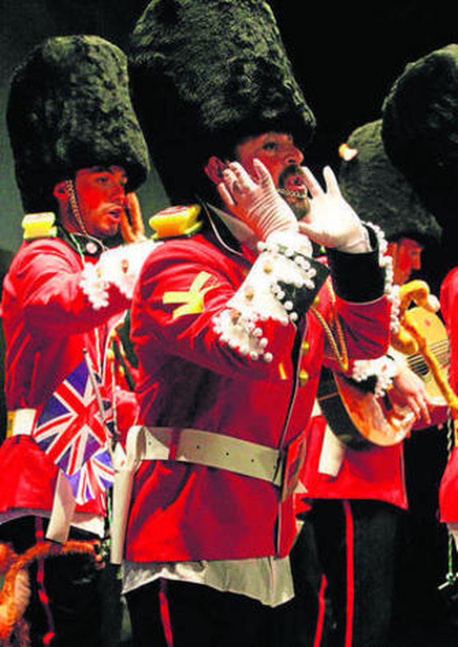 Antes del descanso fue el turno de la chirigota tarifeña Omá que sorpreza me voy pa la guardia ingleza, con un repertorio muy simpático y un tipo de soldados ingleses que divirtió al respetable de La Velada.