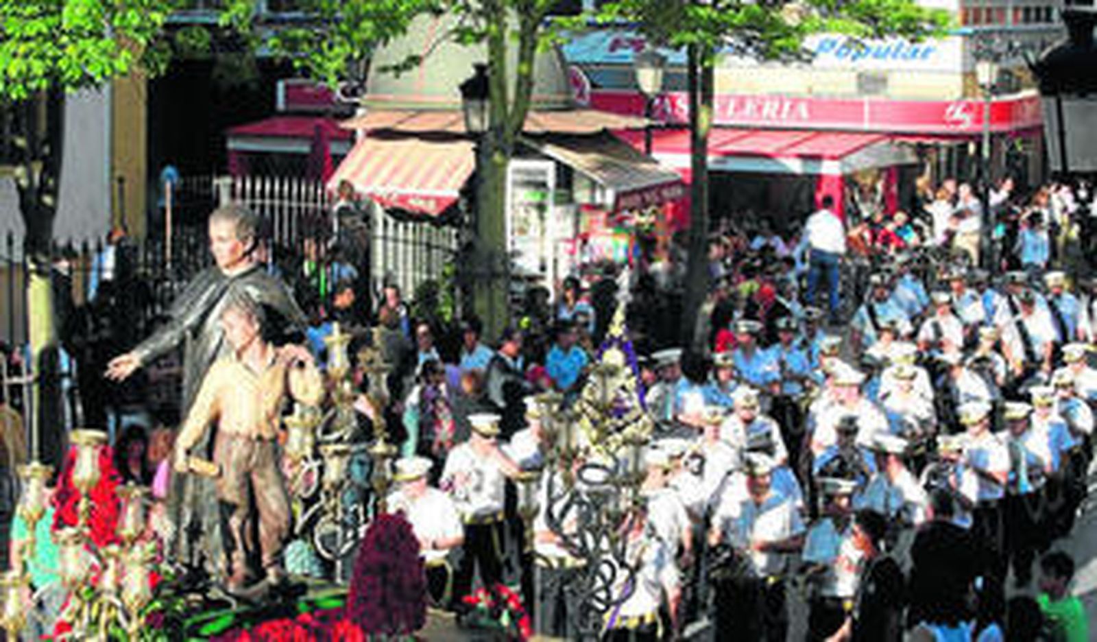 Instantánea de la imagen de San Juan Bosco, en procesión, ante el santuario de la Inmaculada.