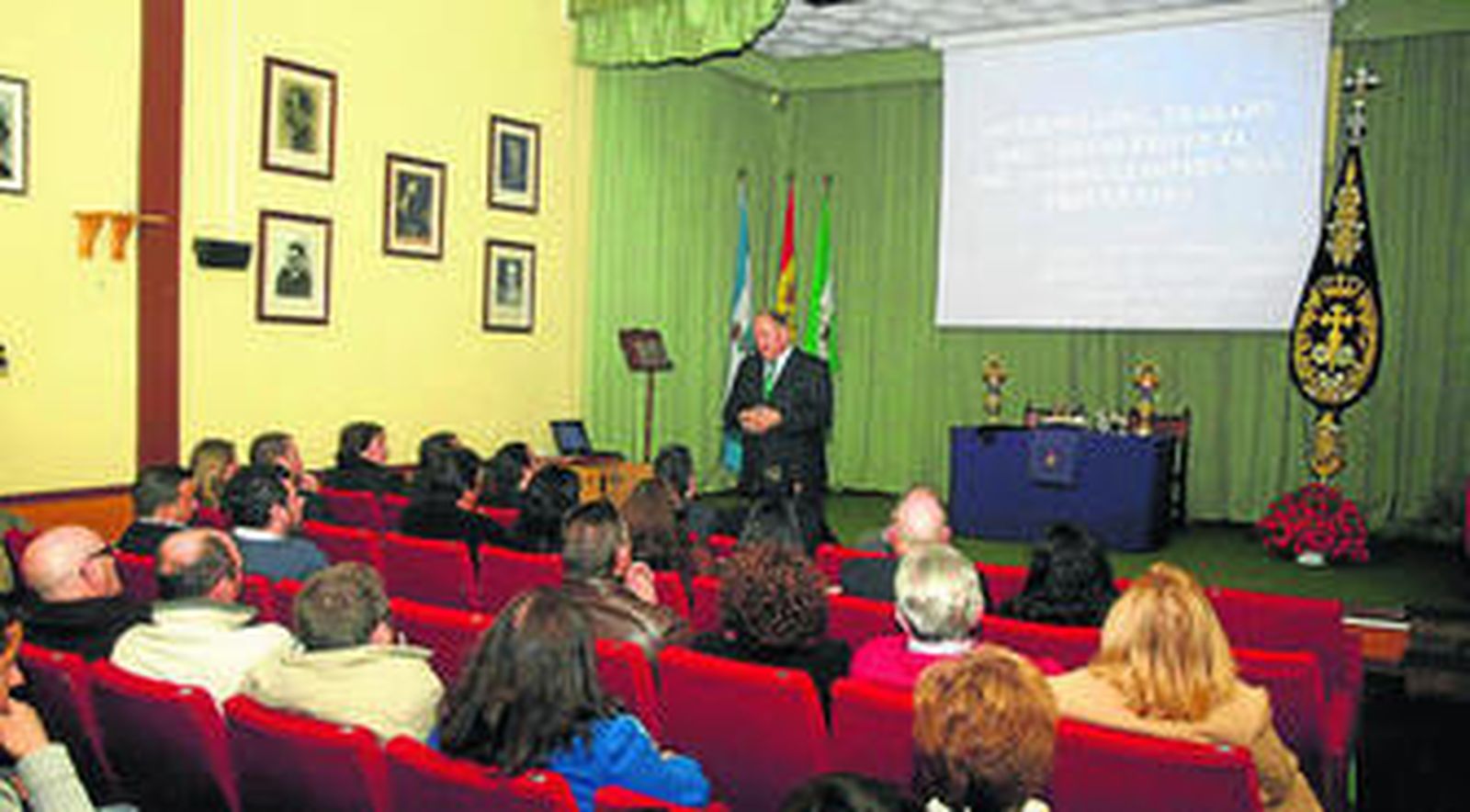 El salón de actos del Círculo Mercantil registró una gran entrada de cofrades que asisteron a una conferencia bajo el título Capataces y Costaleros que impartió el capataz sevillano Antonio Santiago, que ocupa ese cargo de en las Hermandades de la Paz, las Penas de San Vicente, La Macarena, la Sagrada Mortaja, Cristo de Burgos, Los Negritos y Resucitado, entre otras. La gestión de José María Campoy y Benigno Gómez, capataces respectivos del Señor Cautivo y Rescatado, y María Santísima de la Trinidad, hizo posible el acto.