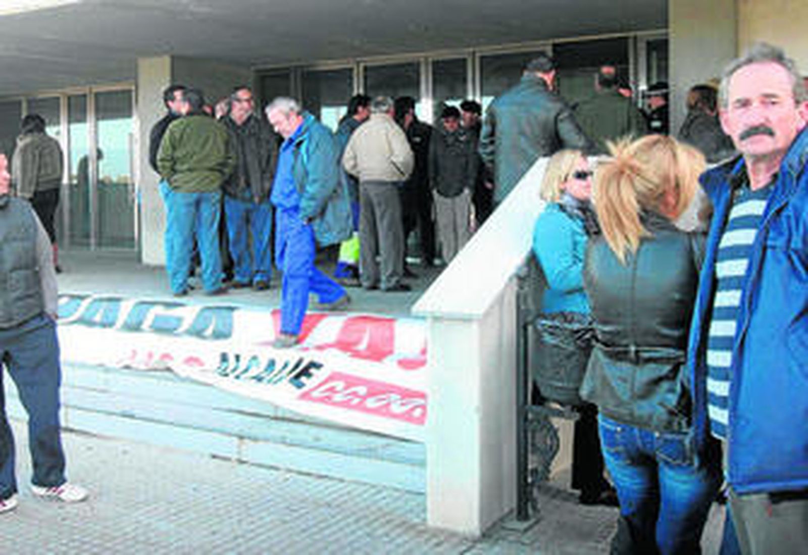 Los delegados sindicales de UGT, USO, CCOO y SPPME se concentraron ayer a las puertas del Palacio de Congresos para protestar por el impago de la nómina de enero, además de la paga extraordinaria de Navidad y las de limpieza y los laborales.