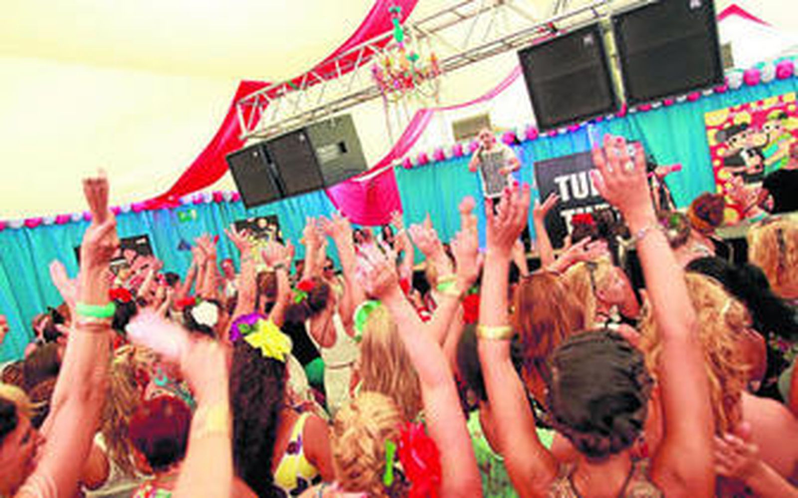 El mejor ejemplo de cómo se vive este día en la Velada y Fiestas se pudo ver ayer en la caseta Turí, Turí, Turí. Pasadas las cuatro de la tarde era prácticamente la única del recinto ferial que estaba llena. Pero la cosa se fue animando poco a poco en el resto de casetas, ya que el calor apretaba ayer de lo lindo. Muchos optaron por hacer tiempo en casa, junto al ventilador o con el aire acondicionado a máxima potencia; otros optaron por tomar algo al fresco antes de aventurarse hacia el recinto ferial, y también hubo los que se decidieron por pasar la tarde en la playa, entre baño y baño, para acercarse a la Feria con la fresquita.