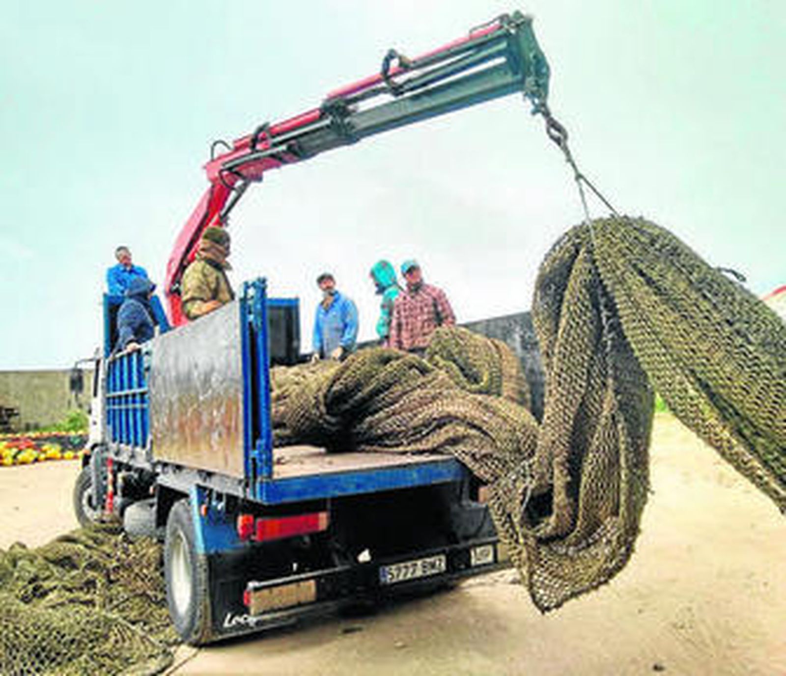 La plantilla ultima las redes en tierra y espera una mejora de las condiciones meteorológicas para trabajar en el mar