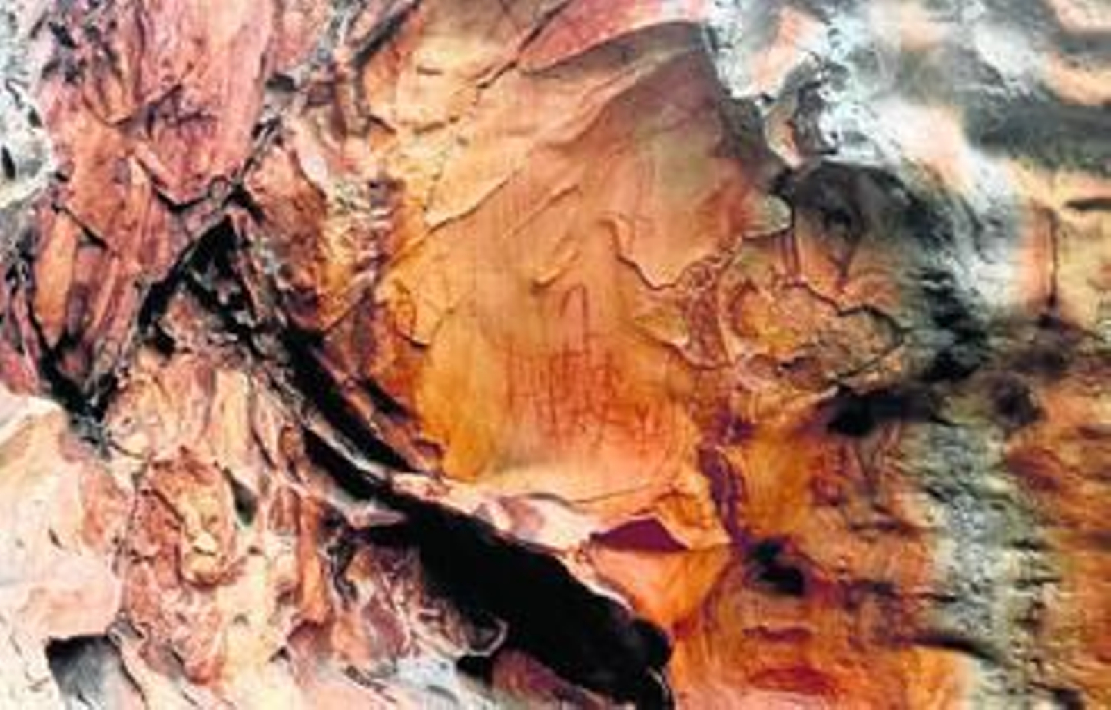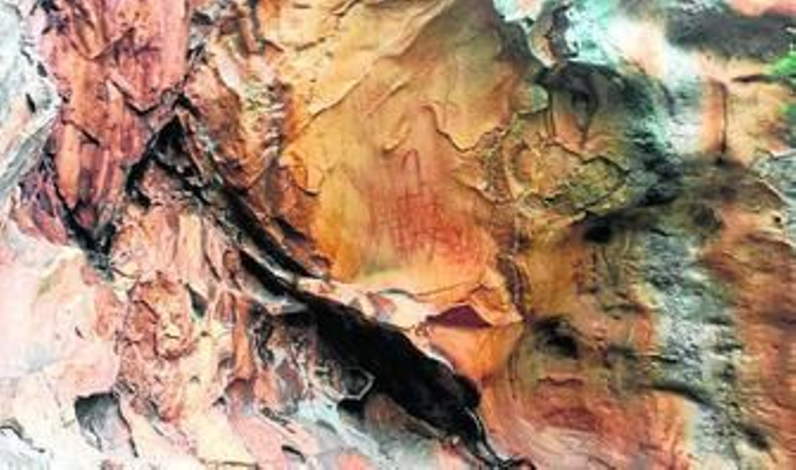 Simón Blanco lo halla en Alcalá, en los lindes con la comarca La pintura, que podría ser del Neolítico, representa cuerpos antropomorfos