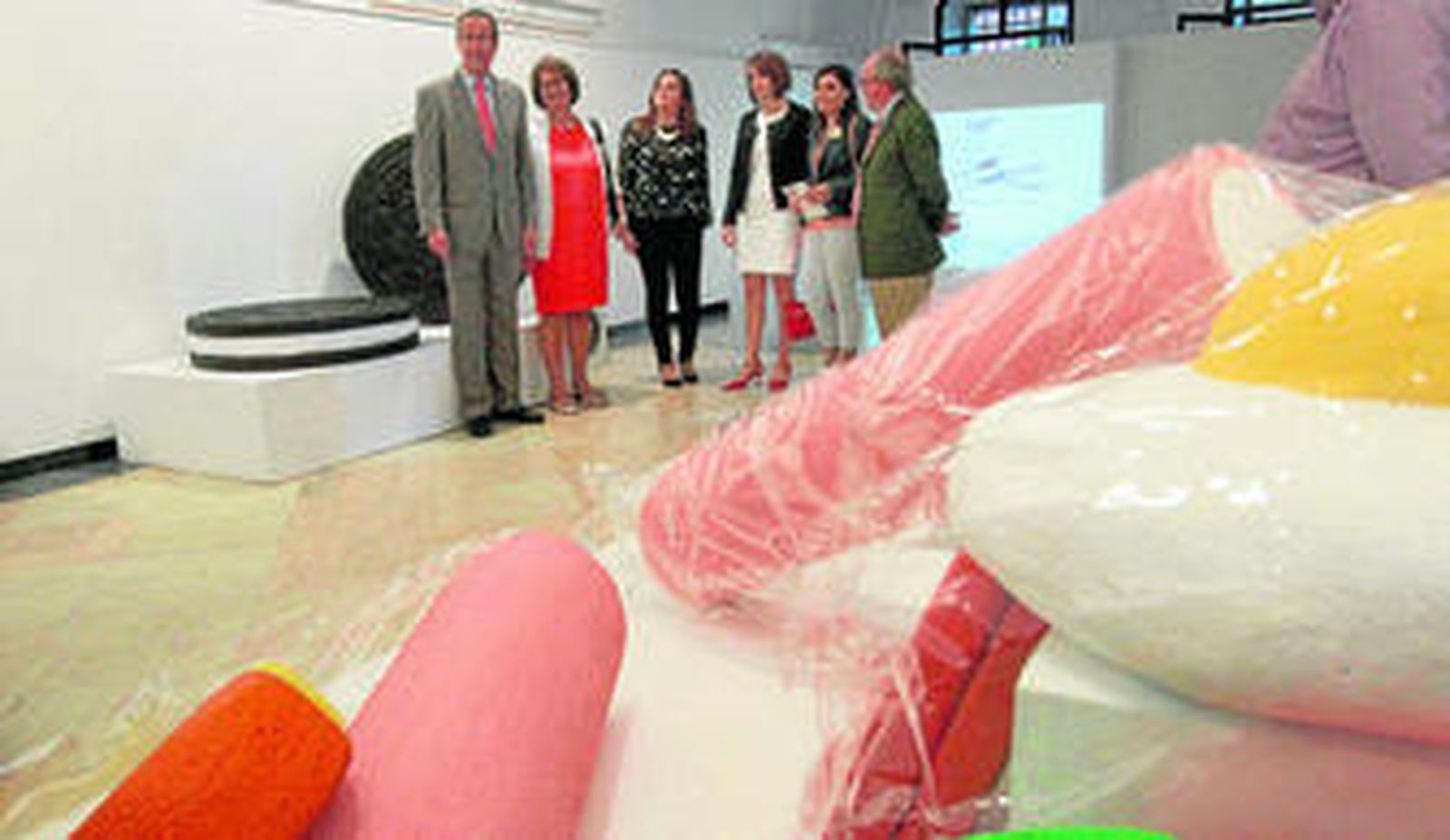 "Son cosas que se encuentran en nuestra vida diaria, es sacarlo a otra escala para destacarlo", explicó ayer la joven artista en una sala al completo de público en su inauguración. Entre las piezas, confeccionadas en corcho blanco, madera e incluso usando una antigua viga de una bodega jerezana, se proyectan y se exponen fotografías de las obras, pero insertadas en el entorno urbano. Una forma de llamar la atención.