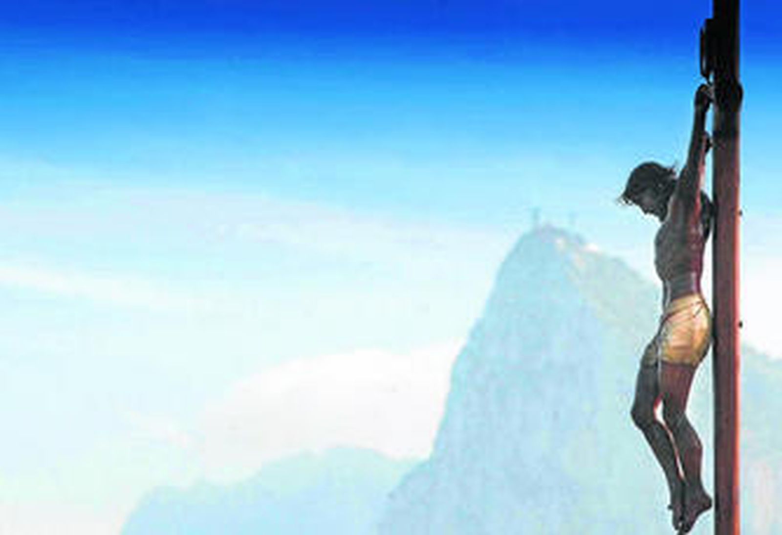 La imagen del Crucificado es arropada por cientos de fieles durante todo su recorrido