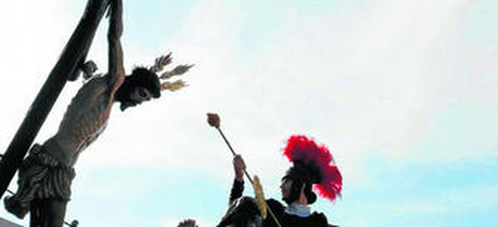 El paso del Santísimo Cristo del Amor, en el que junto al Señor crucificado van María Magdalena y un soldado Romano, estuvo acompañado de forma brillante por la banda de cornetas y Tambores Santa Bárbara y guiado por las instrucciones del capataz Xavier Guerrero García.