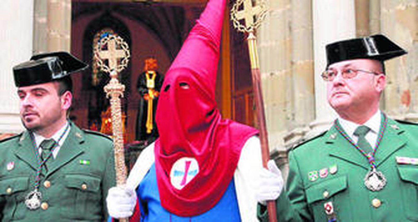 Tras la interminable fila de túnicas azules con abotonaduras y bocamangas color burdeos, antifaz burdeos con el escudo trinitario y cíngulo de fajín burdeos, el precioso paso de misterio de dos niveles del Cristo salía a los sones del himno nacional interpretado por la Agrupación Musical Virgen de los Remedios de Estepona y con los miembros de la Guardia Civil rindiendo honores a la imagen ya que la Comandancia de la Benemérita ostenta en título de hermana de honor. La primera levantá se dedicó a la recordada Carmen Gómez Mora.