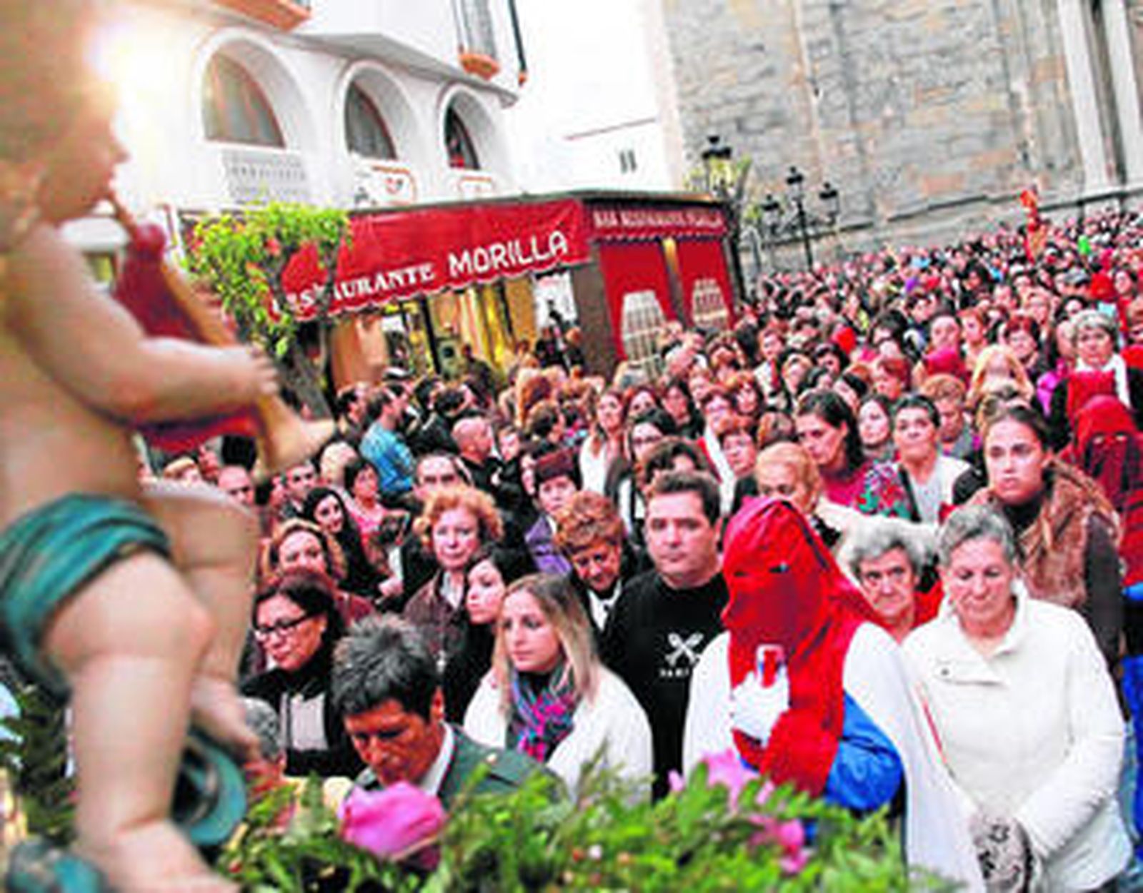 Y salvados el empedrado de la Calzada ambos pasos en su lento desfilar se adentraron por la calle Virgen de la Luz y en la semioscuridad de la trágica noche del Domingo de Ramos una saeta se elevó en forma de oración a los cielos. Una oración por el Cristo cautivo.