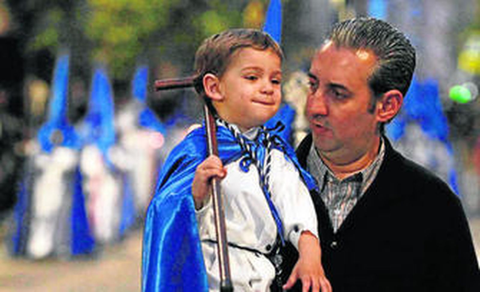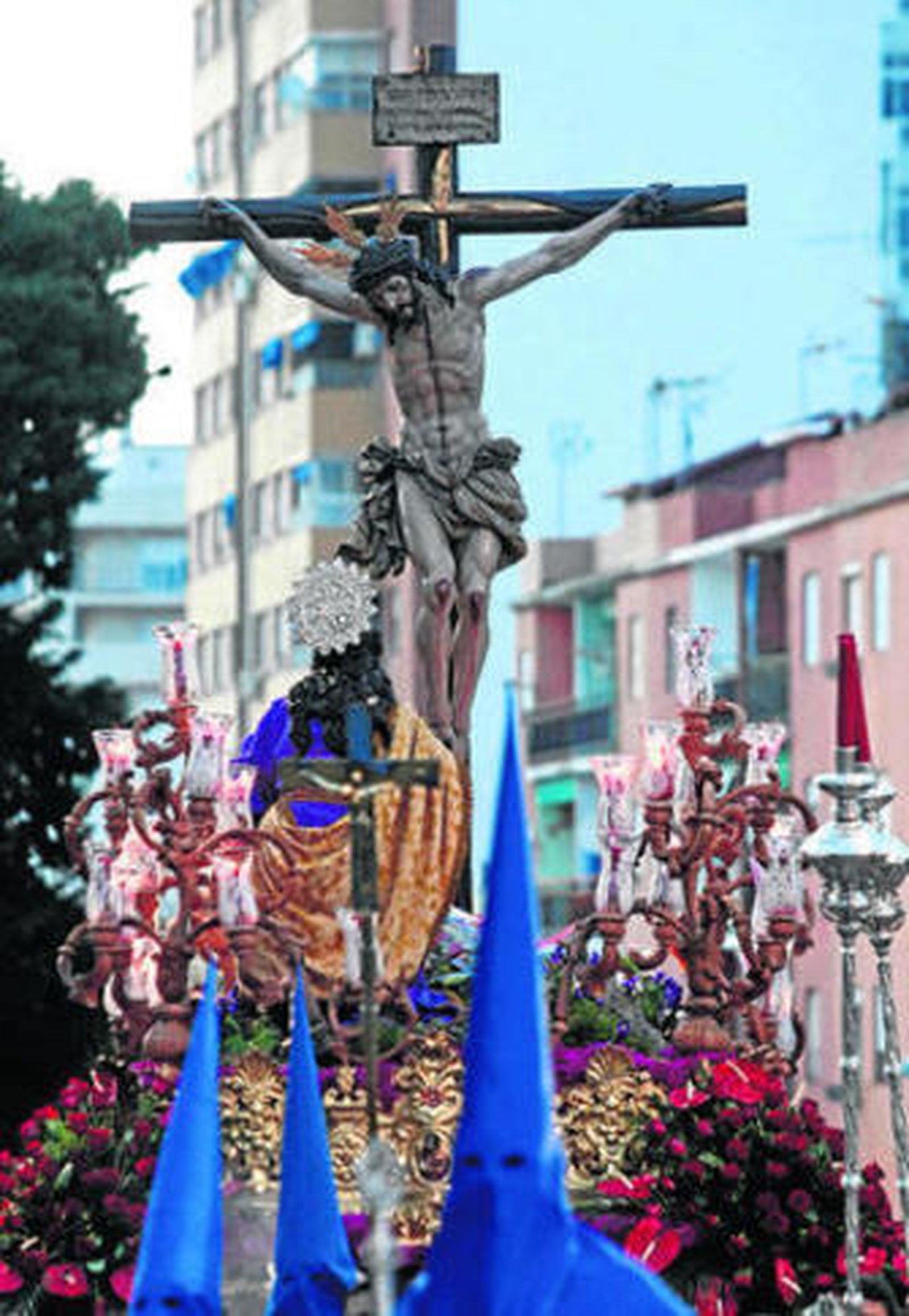Los balcones aledaños al Corpus Christi arroparon la procesión con un color azul que engalanaba también a los nazarenos de la Misericordia, de todas las edades, así como los costaleros, muchos de pequeña edad que se dejaban llevar por la devoción de sus padres para acercarse al misterio y demostrar con valentía que ellos también querían elevar al cielo a las imágenes.