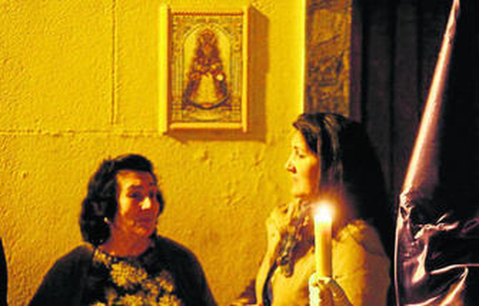 "Al golpe, al brazo. Al golpe, a tierra", fueron las instrucciones del capataz del paso del Nazareno para cumplir con la siempre difícil maniobra de salvar la puerta lateral de San Isidro. Justo a las nueve y cuarto, el Nazareno de la Villa, posado sobre un bello manto de lirios morados y cuatro esquineros con rosas rojas, hizo su aparición en la calle Santísima Trinidad. Tras la revirá, quedó dispuesto para esperar la salida de la Virgen. Y, mientras esperaba, la primera de las saetas de la noche -de un hombre- rompió en la Plaza de la Iglesia, donde se hizo un respetuoso silencio seguido de un aplauso.