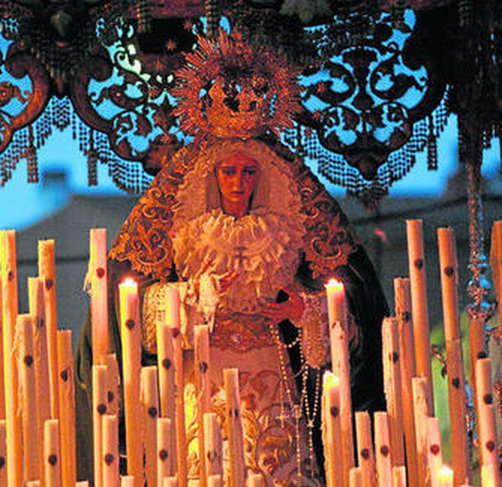 Sin recortar recorrido aunque a un ritmo intenso, Oración y Amor entró en carrera oficial antes de las 21:30, hora prevista según el programa, y acompañada por numeroso público. A pesar de que la climatología no era demasiado apetecible pues chispeaba de vez en cuando y hacía viento, el hecho de que hoy ya fuera jornada festiva influyó y mucho en la afluencia de público.