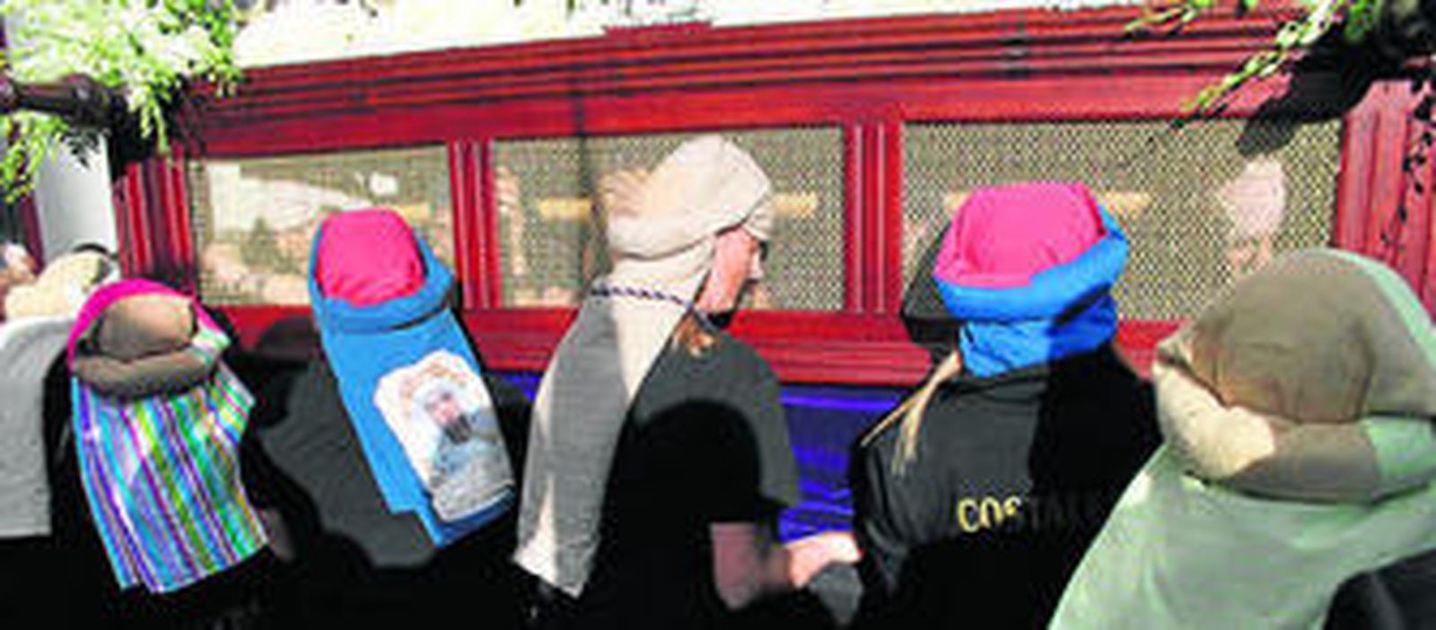 Una vez salido el Paso del Misterio y tras él la Banda de Cornetas y Tambores Pasión de Cristo, le tocaba el turno a la imagen de la Virgen de la Trinidad. Al igual que habían hecho antes sus compañeros con el Cristo, las 35 hermanas costaleras mecieron primero y después sacaron la imagen con total perfección, rodilla al suelo. Media hora antes, Davinia Granja, estaba colocándose la faja, el costal y "y esperando el tiempo". Este año, hay menos costaleras, explicaba. Ellas y ellos deben prepararse desde comienzos de año para asumir esta importante "carga".