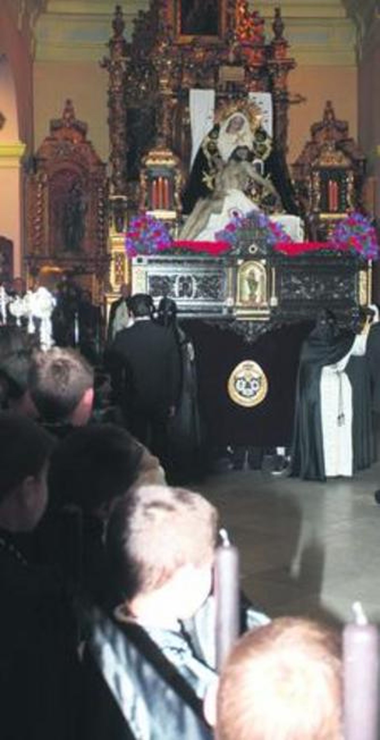 La climatología adversa no dejó otra decisión posible a la Hermandad del Cristo de las Almas y la Virgen de la Angustias. La bella Piedad, obra del escultor sanroqueño Luis Ortega Brú, se quedó un año más en el interior de la iglesia de la Inmaculada Concepción.
