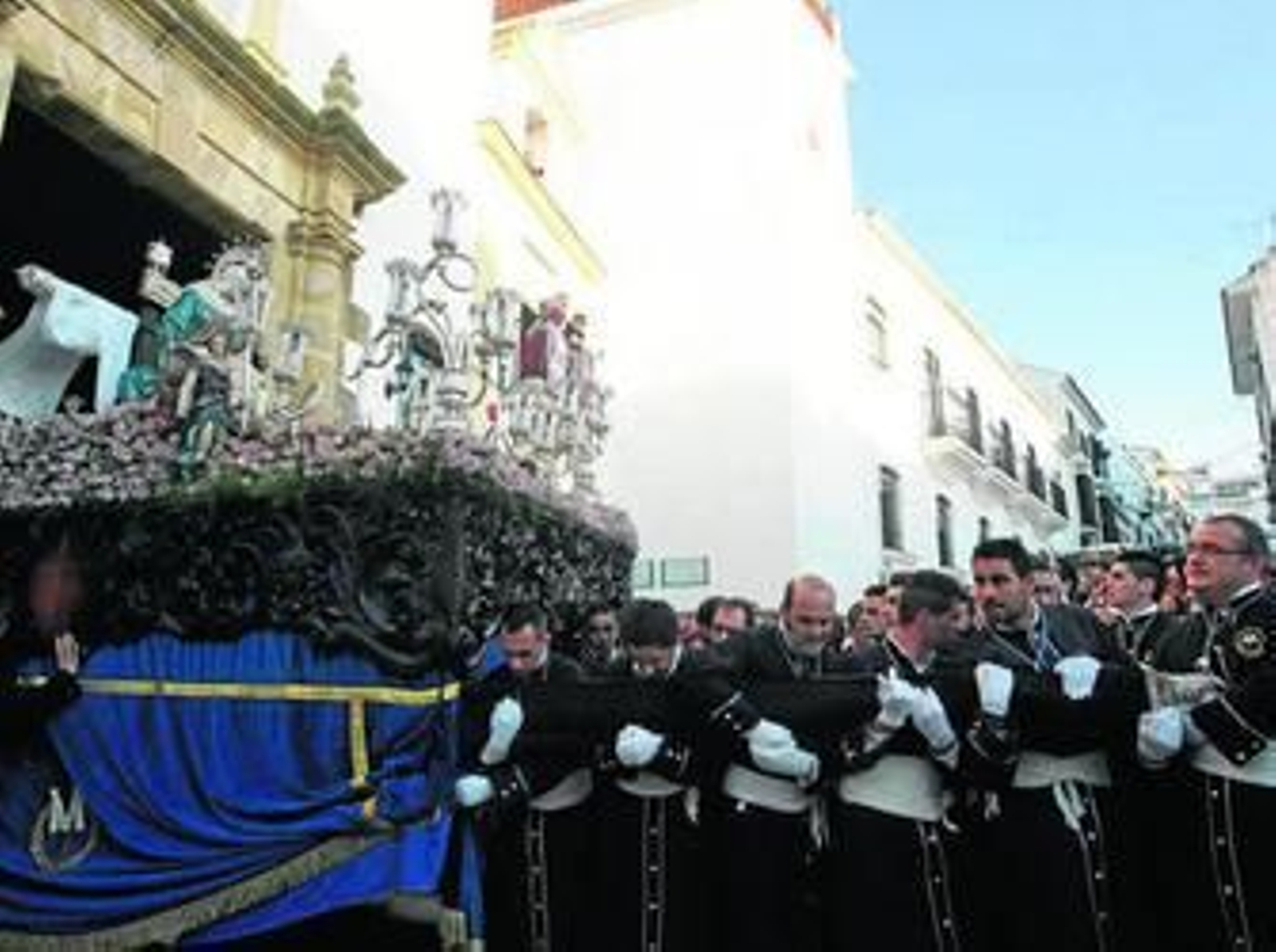 Los cargadores, como siempre volvieron a estar a la altura en la ajustada salida del templo, en el que la maestría de los más veteranos y el empuje de los jóvenes, se unieron en una mezcla perfecta y en pocos minutos la Piedad estaba en la calle. Antes y para mayor espectáculo, se produjo un cruce entre las dos bandas de música, que ayer acompañaron a la imagen: la banda de churriana de la Vega (Granada) y la de Sanlúcar de Barrameda.