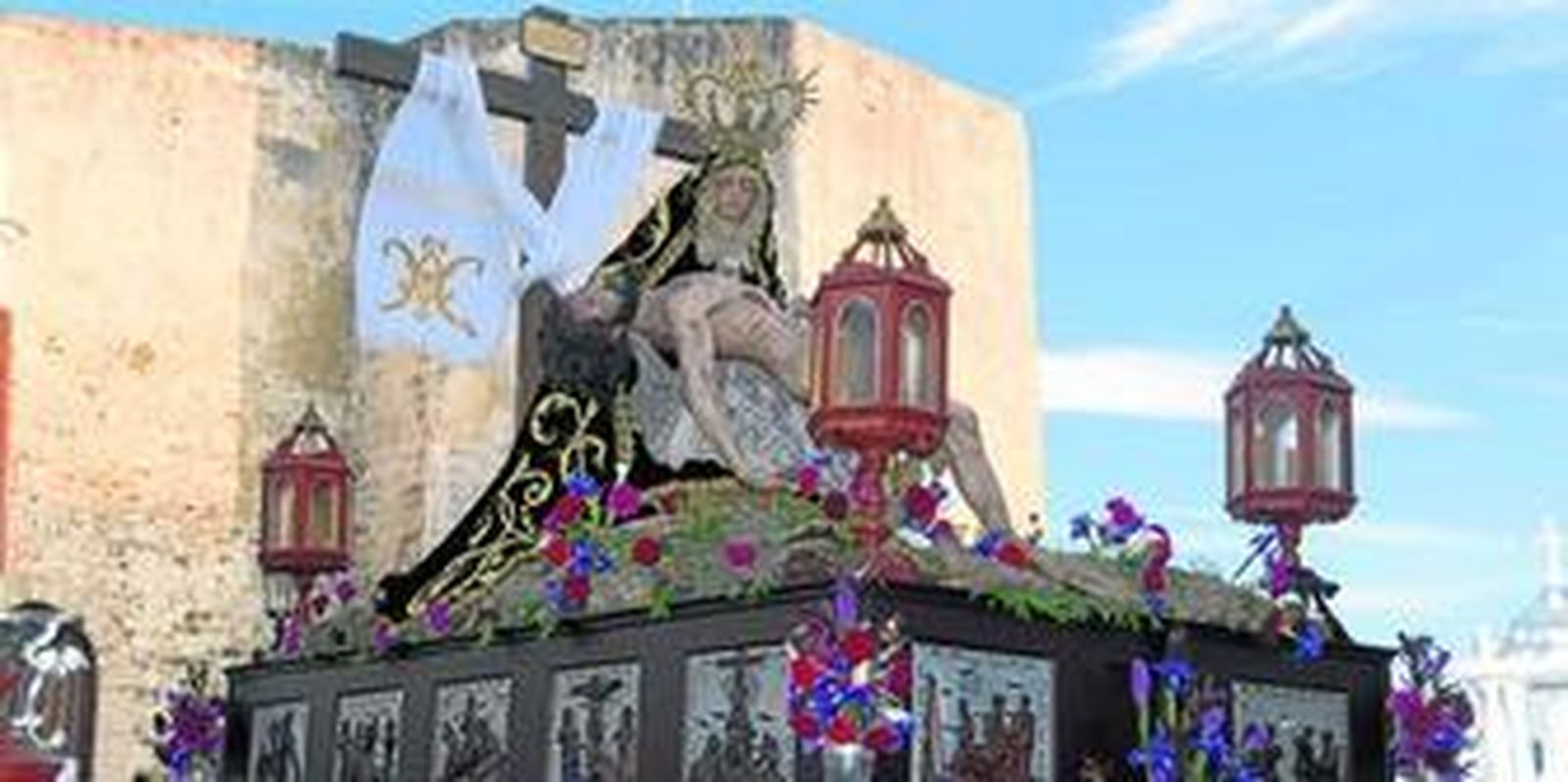 En los alrededores de la iglesia de San Mateo se dieron cita los fieles tarifeños para participar de un recorrido solemne y emotivo y en el que la mujer se convierte en protagonista, ya que son mujeres las que portan a costal el paso de la Piedad, en el que también participan varias mujeres ataviadas de mantilla.
