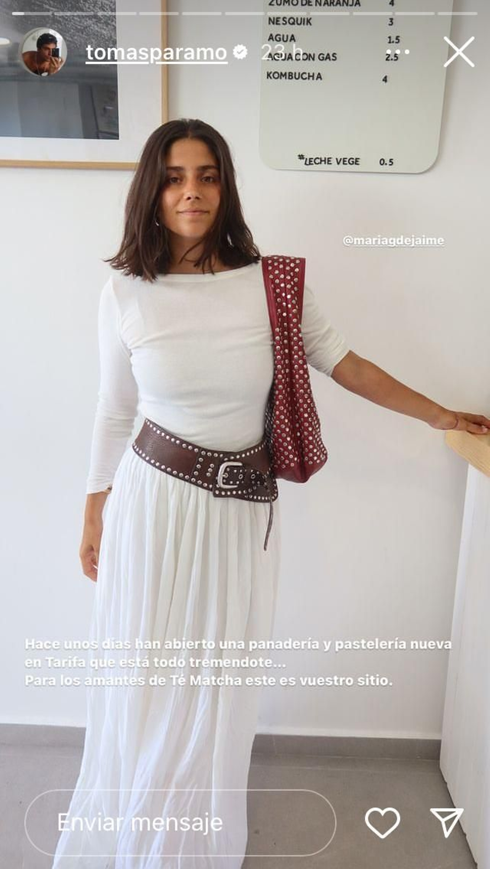 "Hace unos días han abierto una panadería y pastelería en Tarifa que está todo tremendote", ha publicado Páramo. "Para los amantes del té matcha, este es vuestro sitio", asegura.