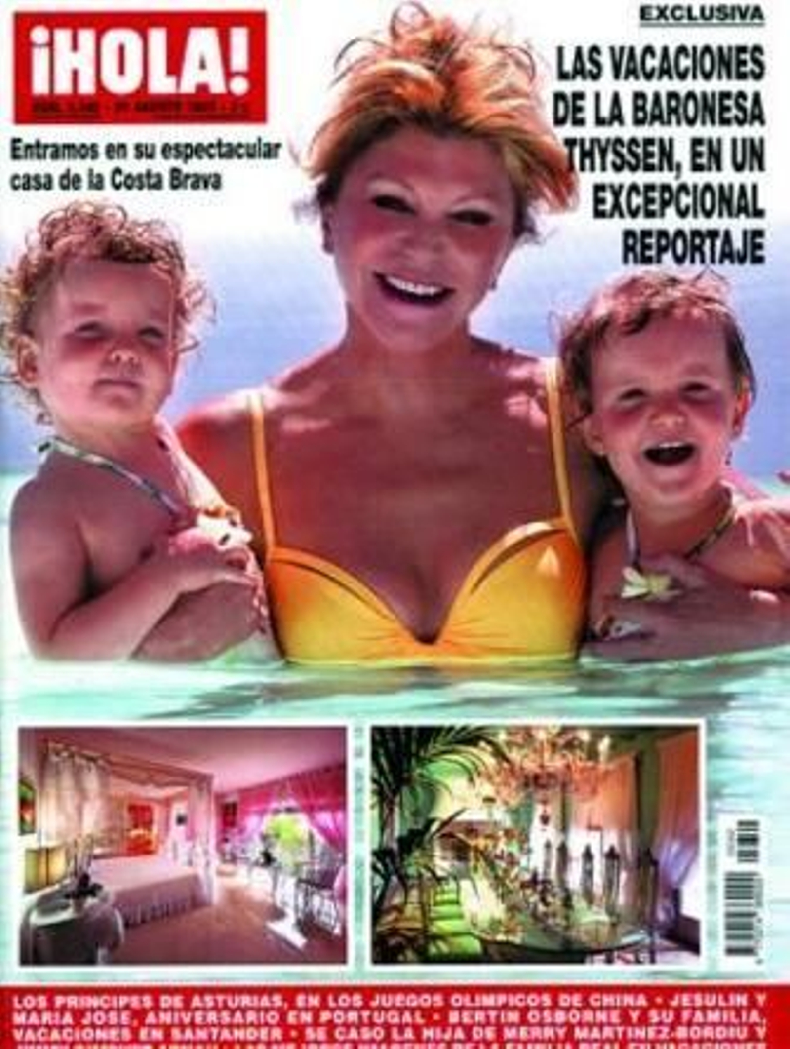 La exclusiva de la semana vuelve a ser una vez más para ¡Hola!, que dedica su portada a la Baronesa Thyssen. Tita Cervera aparece exultante en un posado veraniego junto a sus hijas en la casa que posee en la Costa Brava. Según nos adelanta la revista, -que así se llama el 'apartamento de la playa'-, cuenta con dos grandes casas y cuatro piscinas, en una extensión de más de 30.000 metros cuadrados. Cerca de la casa principal, la baronesa reconstruyó una antigua masía para su hijo Borja.