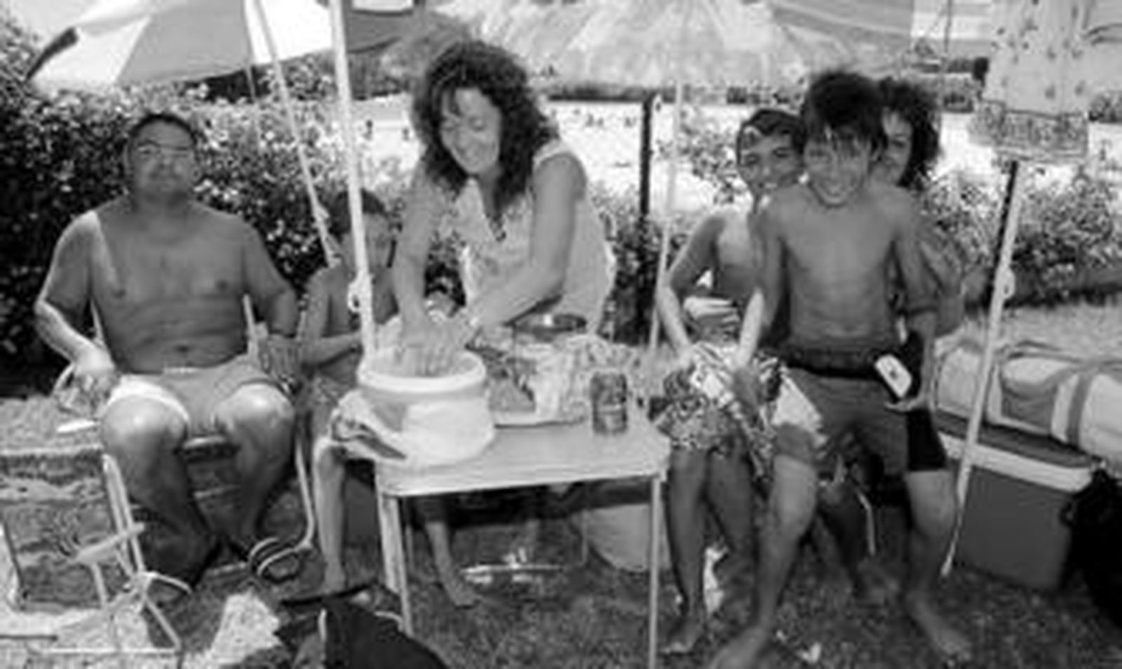 En el entorno tortillas de patatas, sombrillas y las sillas y mesas de playa dibujan la estampa de cada día en el recinto. "Es una forma de sacar a los críos de casa y tenerlos entretenidos todo el día", afirma una usuaria.