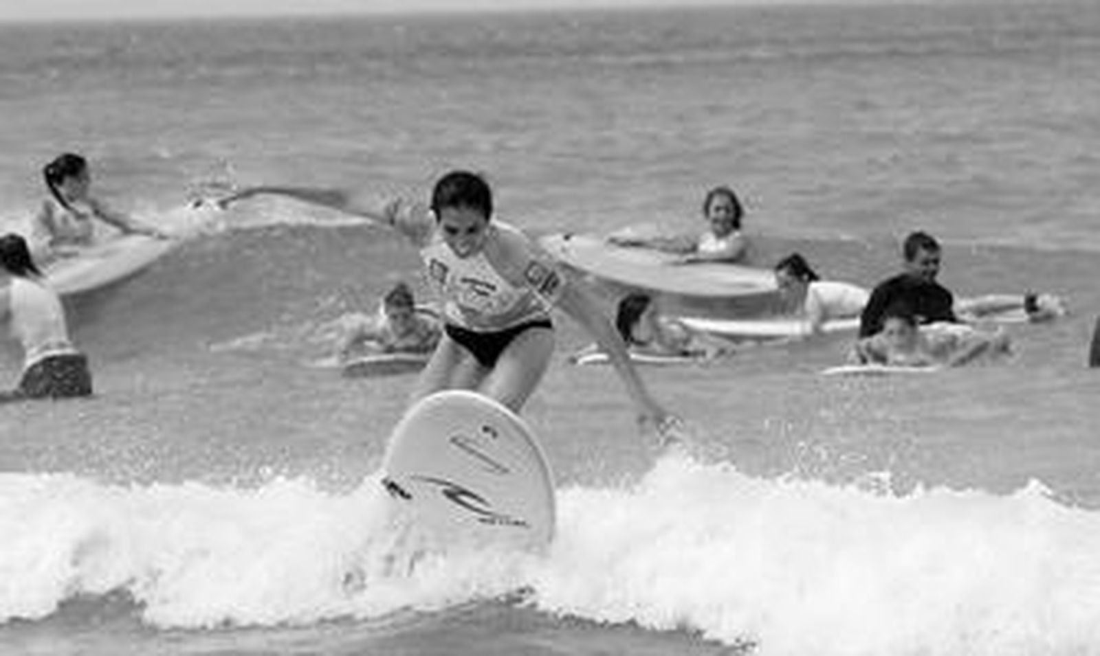 Ayer comenzaron los cursos de aprendizaje y desde primera hora de la mañana ya se podían divisar en la playa largas colas de mujeres preparadas para inscribirse en las actividades. Cuatro monitores -dos franceses y dos españoles- de renombre en el mundo del surf han sido los encargados de impartir lecciones a las chicas. Las clases se han dividido en cuatro turnos, con 24 alumnos en cada uno de ellos y con una duración aproximada de una hora. En primer lugar las chicas realizaron un breve calentamiento a pie de playa, después los monitores dieron algunas instrucciones sobre la práctica del deporte en cuestión y también algunos detalles de lo que no debían hacer para no sufrir ningún percance una vez que se metieran en el mar. Tras esto, tabla en mano, todas las jóvenes se dirigieron al agua para tratar de luchar contra viento y marea y así mostrar las lecciones aprendidas y disfrutar de las primeras olas encima de la madera. El tiempo acompañaba. Un sol espléndido y el mar en calma permitieron a las aprendices disfrutar de la jornada, el único inconveniente fueron las rachas de levante, auténticas protagonistas en el día de ayer.